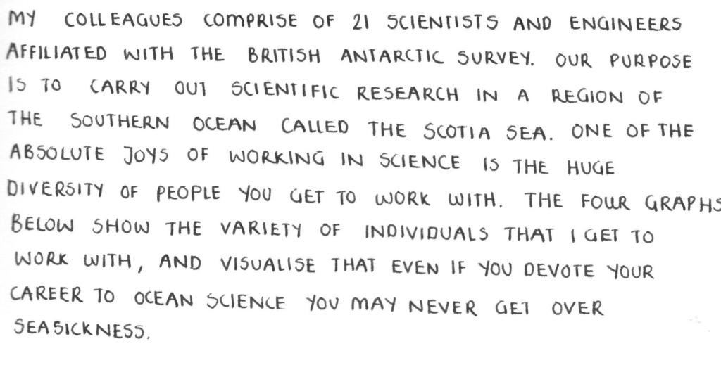Then it’s lunch time and the ship starts to get busy as the people from yesterday’s night shift are now awake too. Meal times are important and sometimes they are the only time when everyone comes together. It’s also nice because the crew, scientists, and engineers all sit together. The ship crew keep the entire ship running – from steering the ship, looking after the engines and cooking – and nothing could be done without them.