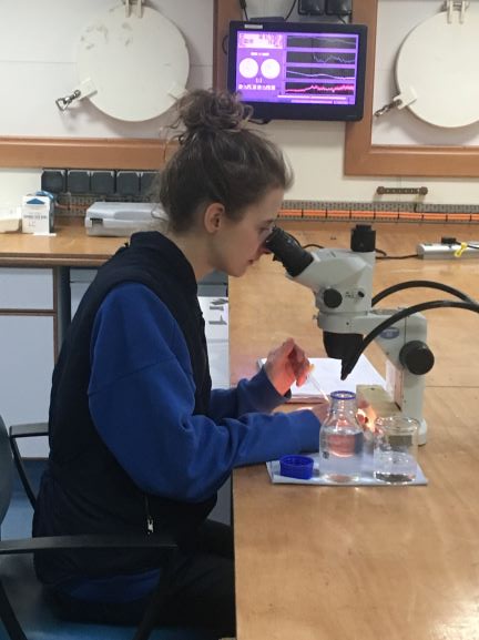 A couple of hours later it’s breakfast, and the scientists on ‘normal’ days are also up and about. These scientists might be running their own experiments in the labs using samples that we’ve already collected. Someone might be on the microscope identifying some of the tiny organisms that live in the sea, and there are probably some people studying krill in the cold lab (set to 2°c so you need all your layers on if you’re working in here).